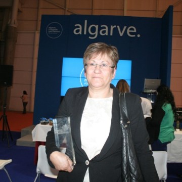 Isolete Correia, diretora da Marina de Vilamoura, com o prémio recebido no certame “Melhor Marina de Portugal”