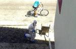 - PJ no local onde o agressor foi detido, recolhendo vestígios de sangue junto à praça de táxis da Oura