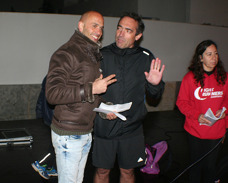 Reinaldo Teixeira entregando um prémio da Garvetur a Rui Costa, da Associação de Atletismo do Algarve, em representação do contemplado, Felisberto Reigado, que também foi o grande vencedor da S. Silvestre