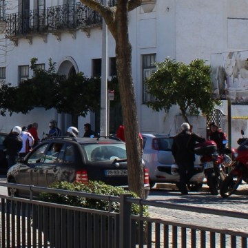 Grupo de dezenas de motards espanhóis de visita à vila naquela manhã de domingo