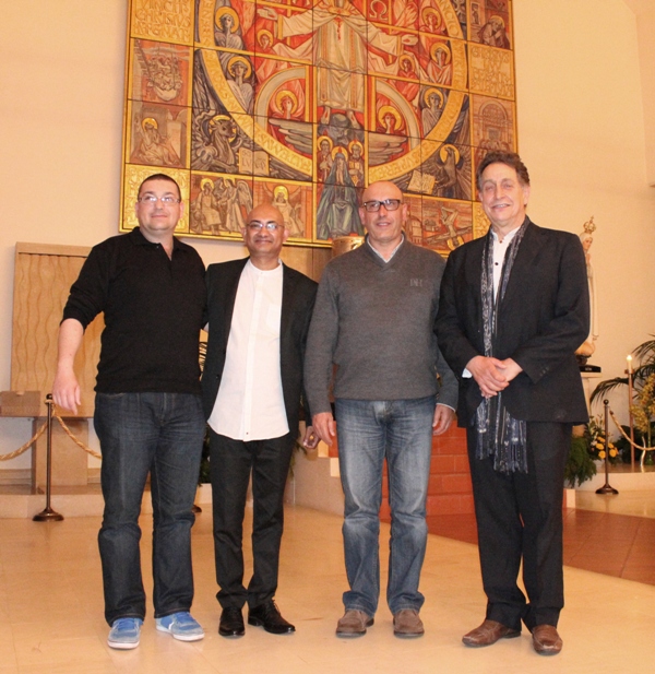 O técnico de som, Renato Silva Júnior, Padre Joaquim Campôa e Rão Kyao