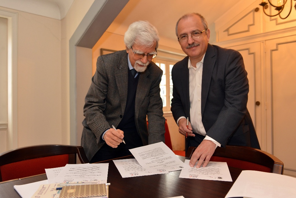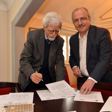 José Manuel Mendes (APE) e Vítor Aleixo (CML) na assinatura do protocolo da criação do prémio literário