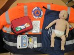 - Kit Desfibrilhação Automática Externa (DAE) de treino completo e um manequim Suporte Básico de Vida (SBV) infante