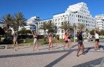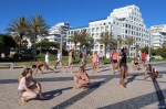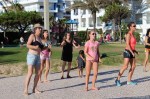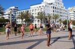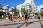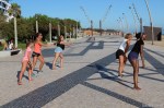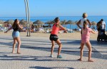 Uma aula aberta com a participação de alunas regulares das aulas da instrutora Elena Loschi mas também com grande participação de inúmeros veraneantes, na sua maioria mulheres mas também com alguns homens, o que é sempre de saudar.