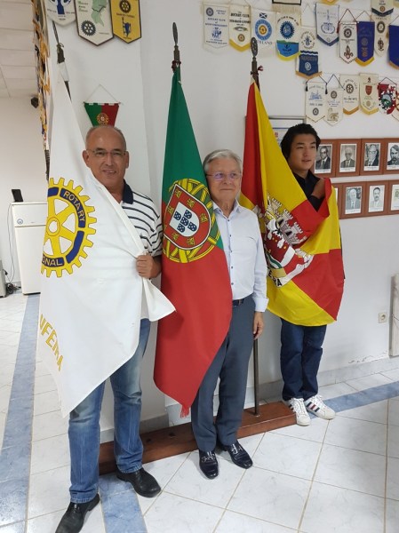 No cumprimento às Bandeiras no dia da sua apresentação na sede do Rotary Club de Albufeira. Companheiros Otelo Cabrita, José Carlos Leandro e Seo Jun Lee