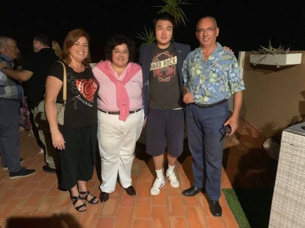 A Presidente do Rotary Club de Albufeira, Cristina Lamy, a Governadora do Distrito, Mara Duarte, o intercambista Seo Jun Lee e Otelo Cabrita