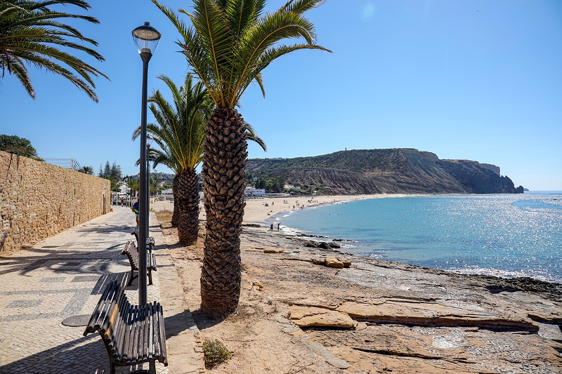 A frente de mar da Vila da Luz, que enquadra o areal e a icónica vista da Rocha Negra, é um dos principais atrativos desta antiga aldeia piscatória, atual destino de férias balneares.