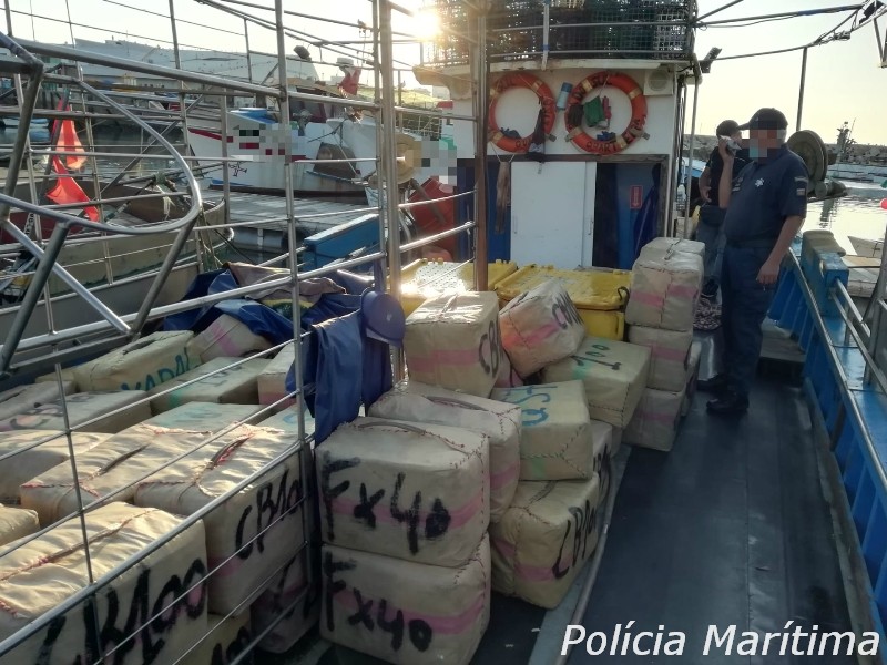 O Comando-local da Polícia Marítima de Quarteira apreendeu hoje 133 fardos com mais de 4500 kg de estupefacientes e deteve dois indivíduos, de nacionalidade espanhola, no porto de pesca de Quarteira.