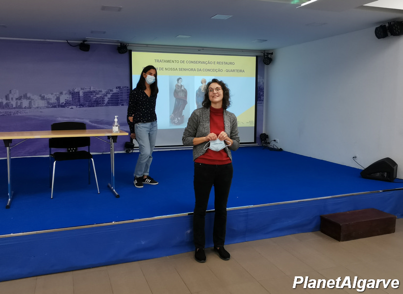 Seguiu-se a intervenção de Ana Rita Vaza, descrevendo todo o trabalho desenvolvido pelas suas colegas restauradoras, Susana Paté e Susana Laneiro, no restauro da imagem antiga de Nossa Senhora da Conceição.