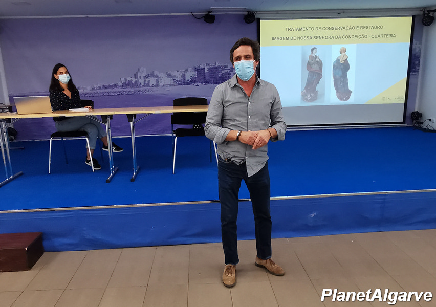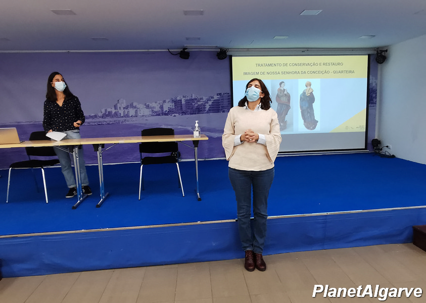 A diretora municipal da Cultura, Dália Paulo, frisou que “nós, desde o início, queríamos que o dia 8 de de dezembro (Dia de Nossa Senhora da Conceição) fosse uma dia significativo. Para nós, o mais importante não é o dia da inauguração, é toda a vivência que se tem. Nós, do Museu de Arqueologia de Loulé, continuamos a dar vida diariamente àquela exposição e tínhamos esse objetivo de, a 8 de dezembro, ter exposta esta imagem magnífica mas, como todos vocês sabem, trabalhar no património é sempre trabalhar no escuro e no inesperado e acho que aqui tivemos uma belíssima surpresa. Temos aqui uma imagem com os requintes dos séculos mas que ainda tinha ali o original ou aquilo que nós pensamos ser o original. Temos essa felicidade e acho que ganhámos uma nova imagem como património maior. Para além do trabalho que estamos a desenvolver ao nível da dimensão educativa da exposição, não parámos o trabalho de investigação e não parámos o trabalho para a concretização do catálogo. Estamos a trabalhar para que, no próximo ano de 2022, à semelhança do que fizemos com a exposição Loulé – Território, Memórias e Identidades que se fez em Lisboa, que dois anos depois viu à luz do dia o seu catálogo, aqui também aconteça isso. Estamos a trabalhar para que o catálogo que vai dar consistência àquela exposição venha a ser uma realidade. Aquela exposição tem um tempo efémero, há de sair dali e havemos de ter um espaço em continuidade e em consistência, um polo museológico, um museu da cidade de Quarteira mas, entretanto, vamos ter o catálogo com tudo o que foi estudado e que não está na exposição. Portanto, dizer aqui aos quarteirenses que estamos a preparar essa edição que contamos ter para o ano, talvez lá para as Jornadas Europeias do Património. Portanto, podem contar com um momento muito bonito, sobretudo para aumentar a identidade, a autoestima e o conhecimento sobre este território de Quarteira que a todos tanto nos orgulha e que faz parte deste nosso Algarve e deste nosso Concelho de Loulé”.