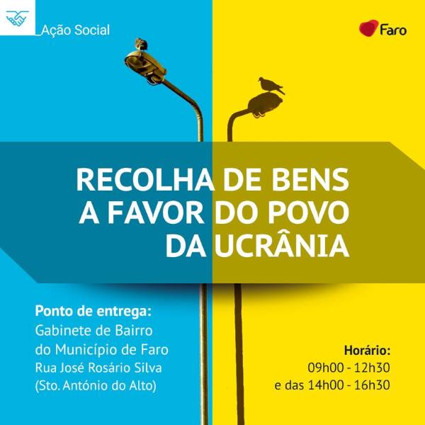 Nota: O Município de Faro irá, também, recolher donativos no dia 2 de março, entre as 9h e as 18h, no Jardim Manuel Bivar. Esta ação decorre no âmbito da exposição de meios e agentes de Proteção Civil.