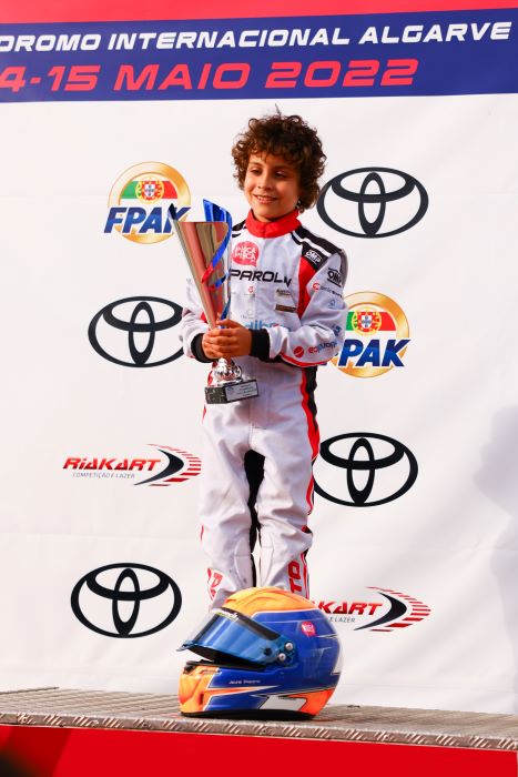 No domingo, o jovem piloto de 9 anos voltou a mostrar a sua rapidez ao garantir a pole-position nos treinos cronometrados, deixando desde logo boas indicações de que poderia conquistar o lugar mais alto do pódio em Portimão.