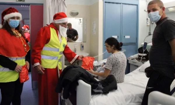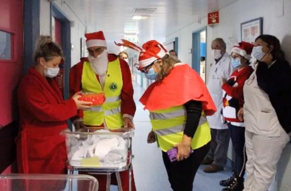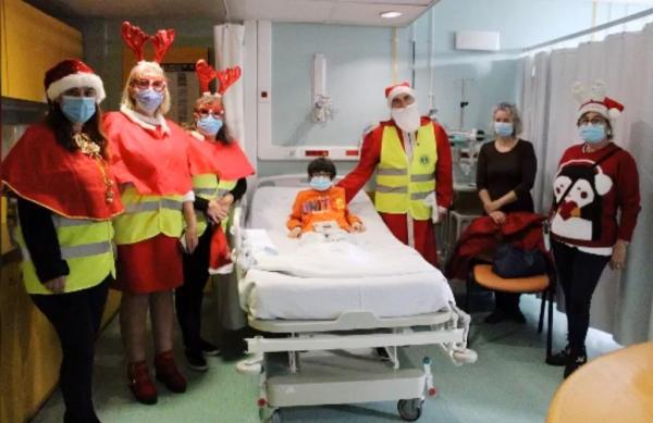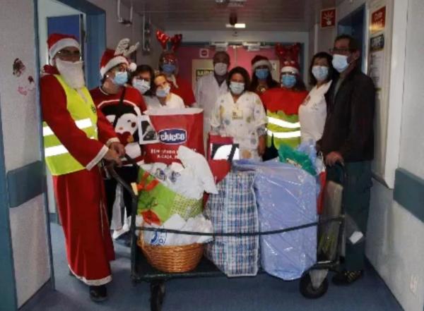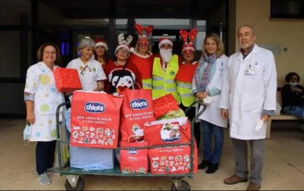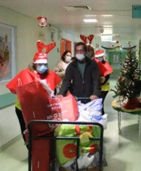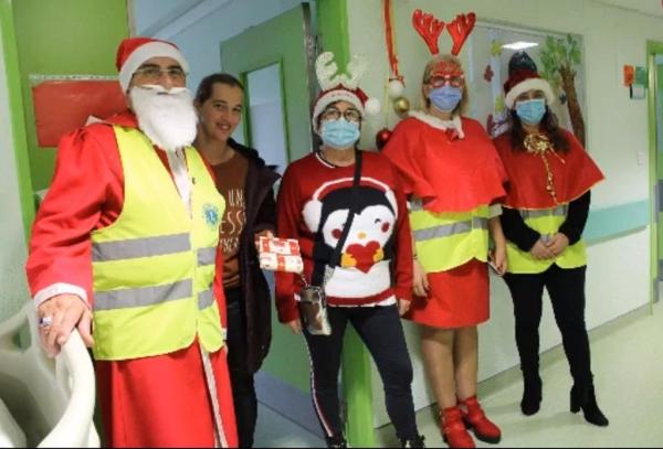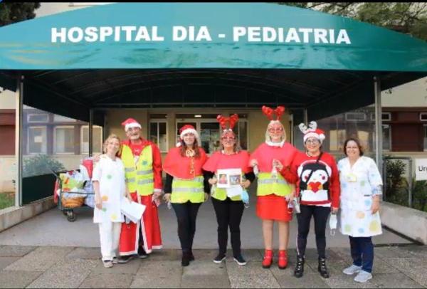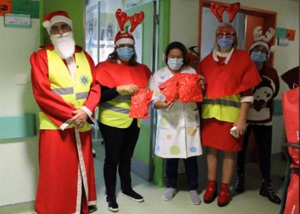 Cinco elementos do Lions Clube de Vilamoura, vestidos de Pai Natal, visitaram e surpreenderam as crianças presentes nos serviços de Pediatria, Obstetrícia, Hospital de Dia.