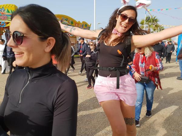 Por se tratar de uma caminhada de Carnaval, muitos dos participantes iam trajados a preceito.
