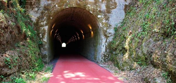 Legenda da figura: Túnel da Ecopista do Dão, que percorre a antiga Linha do Dão entre Santa Comba Dão e Viseu. A transformação das antigas linhas em Ecopistas permite a preservação dos ativos e do património ferroviário, mantendo-os ao serviço da sociedade e não fechando a possibilidade de voltarem a ter função ferroviária.