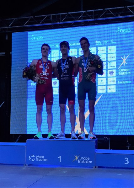 Tudo se decidiu na corrida, com Miguel Tiago Silva a entrar em 5.º lugar, integrando um grupo coeso de oito atletas. João Pereira fez um extraordinário terceiro segmento, conseguindo alcançar o primeiro grupo, que ficou composto por nove atletas e onde seguiam o inglês e tri-medalhado olímpico Jonathan Brownlee, o norueguês Vetle Thorn, os franceses Paul Georgenthum, Valentin Morlec e Yanis Seguin e os suíços Simon Westermannn e Fabian Meeusen.