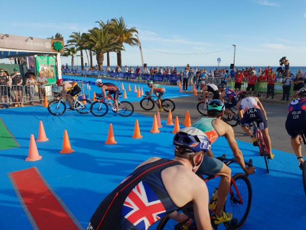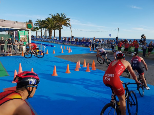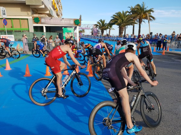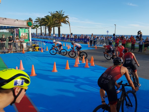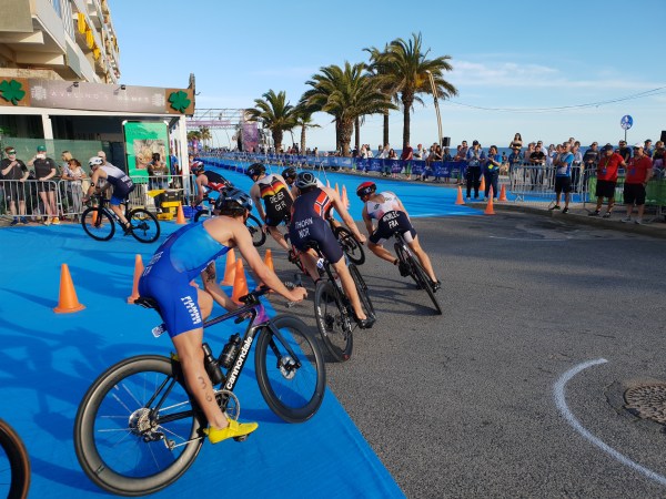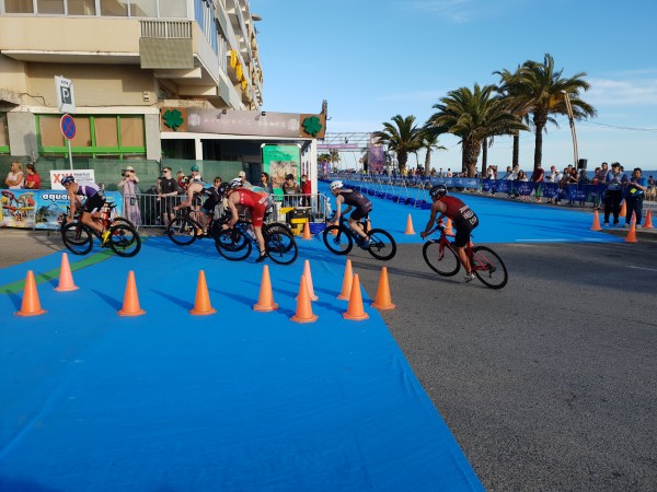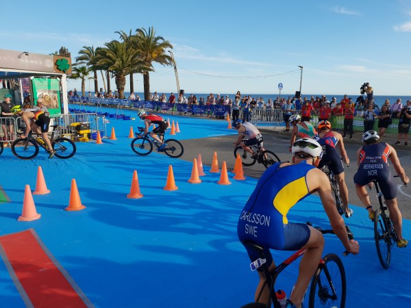 Os atletas nacionais disputaram bem a natação, com destaque neste segmento para Miguel Tiago Silva que foi o segundo atleta a sair da água e o primeiro a entrar no ciclismo, inserindo-se no primeiro grupo juntamente com mais 15 elementos. João Pereira, João Mansos, André Dias e Pedro Gaspar posicionaram-se no segundo grupo, com Hugo Figueiredo e Tiago Fonseca a pedalarem mais atrás.