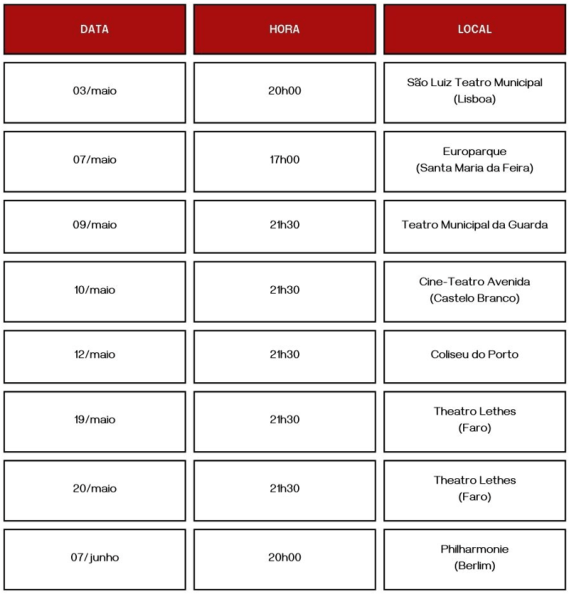 A Orquestra Filarmónica Portuguesa (OFP) entra no mês de maio com uma agenda dedicada aos “Concertos da Europa – Metamorfoses de Amor”, uma série de concertos que irá percorrer os palcos de Lisboa (03/maio), Santa Maria da Feira (07/maio), Guarda (09/maio), Castelo Branco (10/maio), Porto (12/maio) e Faro (19-20/maio). A presença na mítica sala da Filarmónica de Berlim em junho será o ponto alto da tournée (07/jun).
