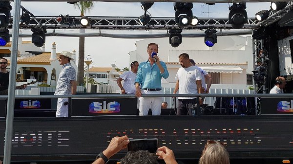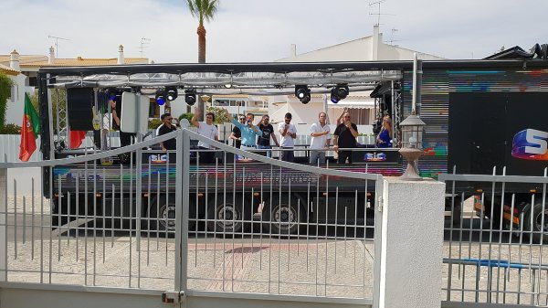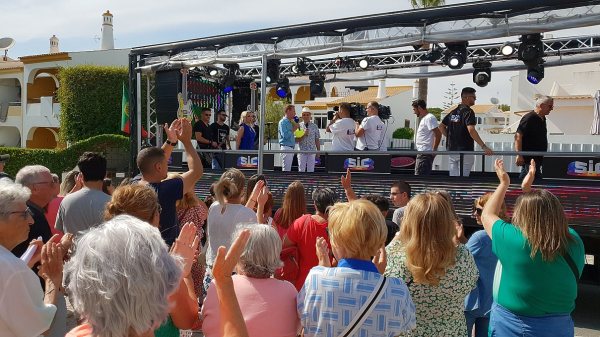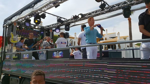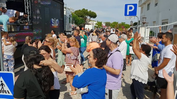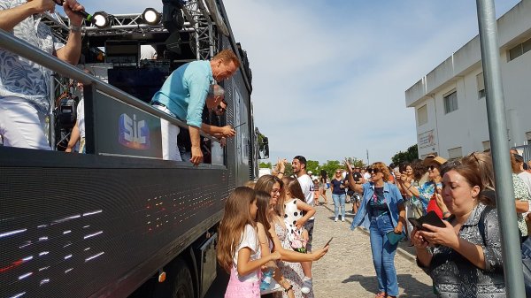 O camião-palco do programa Domingão, da SIC, andou por Quarteira na tarde deste domingo, animando a cidade que, em festa, acompanhou o percurso do camião, vibrando com a parada de estrelas.