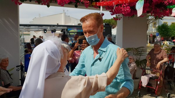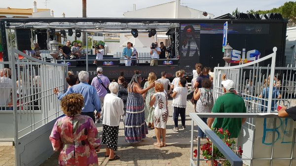 Daí, o camião-palco deslocou-se ao longo da marginal e depois Av. Sá Carneiro, em direção ao Centro Paroquial de Quarteira, ao qual dedicamos esta reportagem.