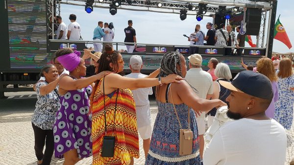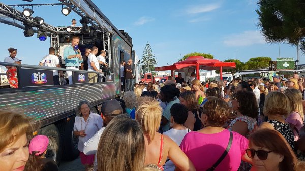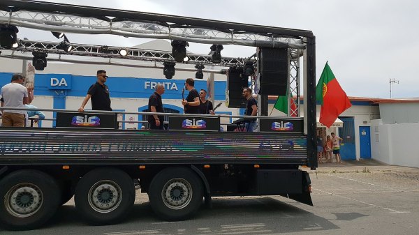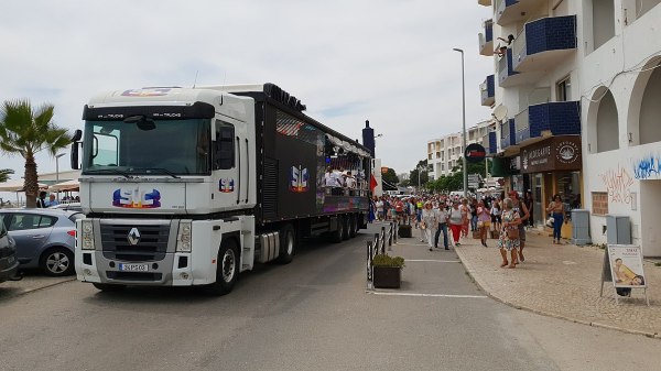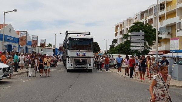 Daí, o camião-palco deslocou-se ao longo da marginal e depois Av. Sá Carneiro, em direção ao Centro Paroquial de Quarteira (ver reportagem separada).