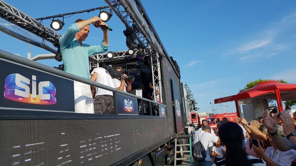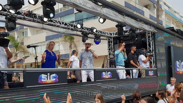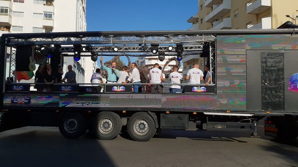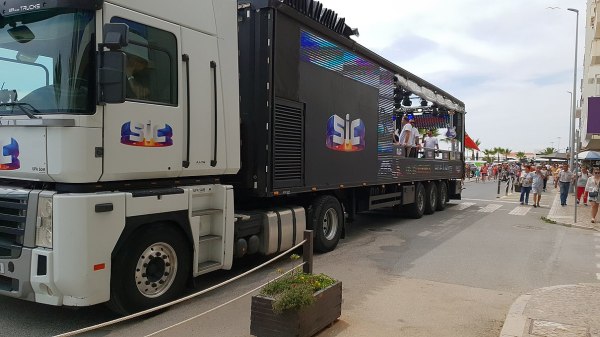 O camião-palco do programa Domingão, da SIC, andou por Quarteira na tarde deste domingo, animando a cidade que, em festa, acompanhou o percurso do camião, vibrando com a parada de estrelas.