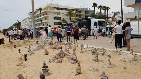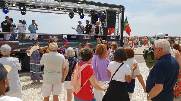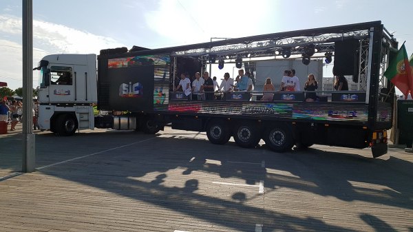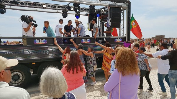 O camião-palco dirigiu-se depois à Av. Infante de Sagres (marginal), Av. Sá Carneiro e e terminando com nova animação nos Petiscos do Pescador, no Passeio das Dunas.