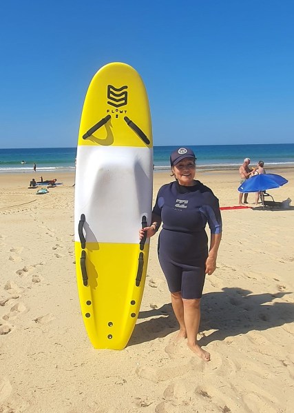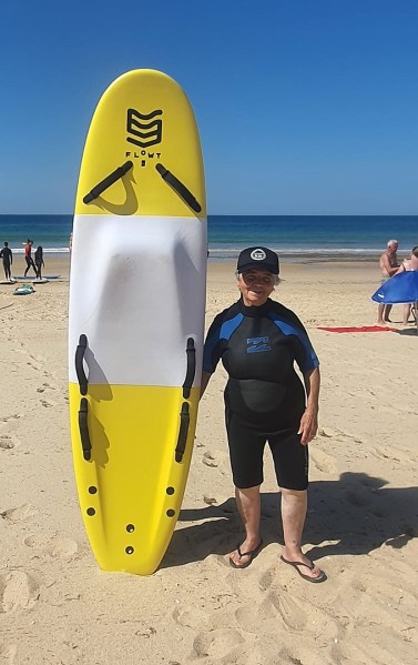 Participaram mulheres entre os 70 e os 90 anos, as quais praticaram surf pela primeira vez nas suas vidas.