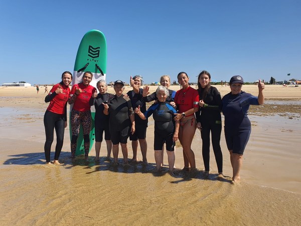 O Convívio de Adultos da Fundação António Aleixo, em Quarteira, recebeu o convite da Associação Dinamika para participar numa aula de surf sénior na Praia da Falésia, em Vilamoura.