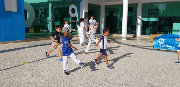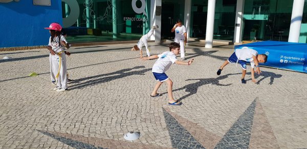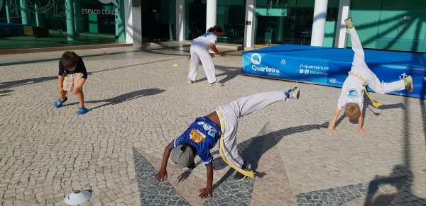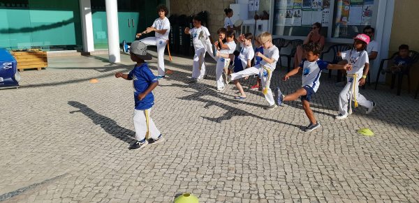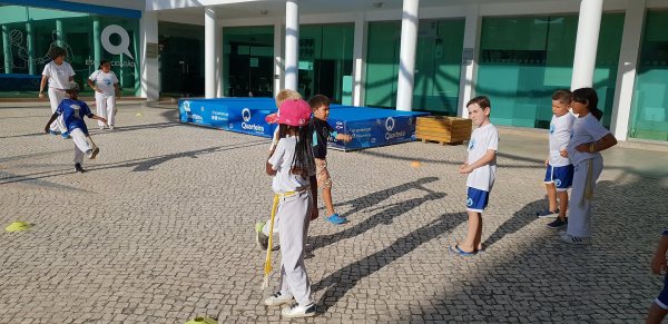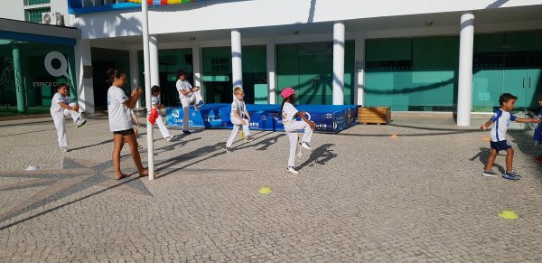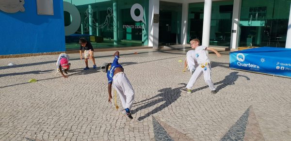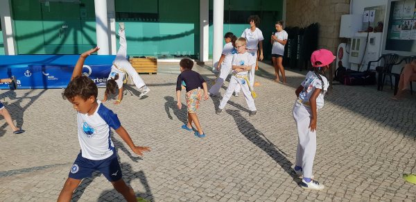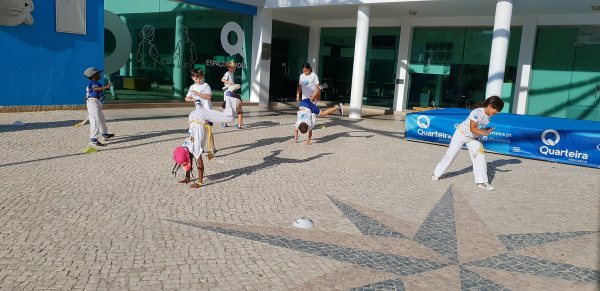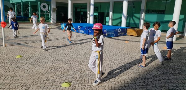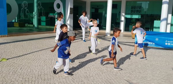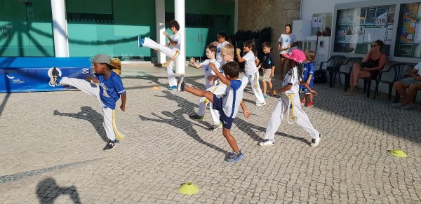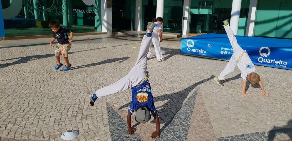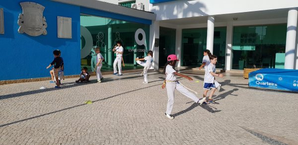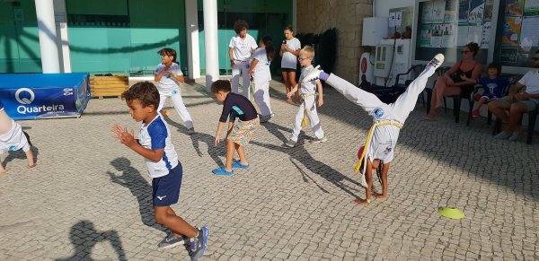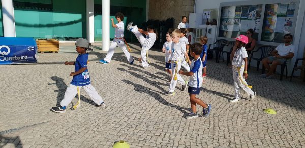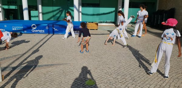O Largo do Centro Autárquico de Quarteira foi palco ontem ao fim da tarde de uma aula aberta de Capoeira Kids.
