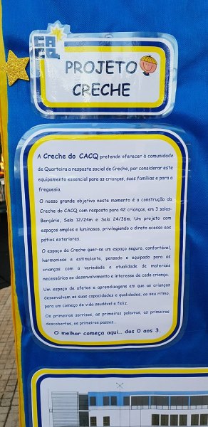 O CACQ pretende construir uma creche com resposta para 42 crianças dos 0 aos 3 anos de idade, composta por berçário e 2 salas.