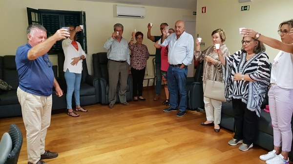 O convívio foi encerrado com um brinde à saúde do tesoureiro da associação, Isidro Dinis, com o presidente da AHDPA, Adelino Rocha, a lembrar que Isidro Dinis tem sido o eterno tesoureiro da AHDPA, nas várias direções eleitas (chegou igualmente a ser presidente da direção) e que, há uns anos atrás, disse que precisava dele porque a associação estava a morrer. “Ajudei-o, com o propósito inicial de fazermos aqui obras, que ainda custaram algum dinheiro e a associação estava tecnicamente falida. Havia uma candidatura que já vinha de 2011, até 2016 nunca fizeram nada e em 2017 o programa caía. Perdíamos tudo e a associação ainda tinha que devolver a verba entretanto atribuída. O certo é que conseguimos e edificámos isto. Na altura, ainda não éramos IPSS e a câmara não nos podia ajudar. Agora, é o que é, a casa é da câmara e brevemente vamos arrancar com a obra de ampliação das instalações. Todo o edifício vai ser transformado. É uma obra que vai custar cerca de 200 mil euros. A juntar a isto, vamos ter o Jardim Sensorial. Todos nós devemos estar vaidosos porque tudo isso vai contribuir para que este venha a ser o melhor centro de dia do Algarve, o centro de referência da região, palavras das arquitetas e das engenheiras da Segurança Social. Da minha parte, enquanto presidente, estou vaidoso, sinto-me muito horado e agradeço tudo isto à equipa que nós temos. Portanto, este momento não é para nós, é para o Sr. Dinis por ter sido o homem que segurou sempre a associação. Aquilo que nós hoje somos, direta ou indiretamente, a ele se deve. Por isso, proponho que façamos um brinde de bem-aja ao Sr. Dinis”.