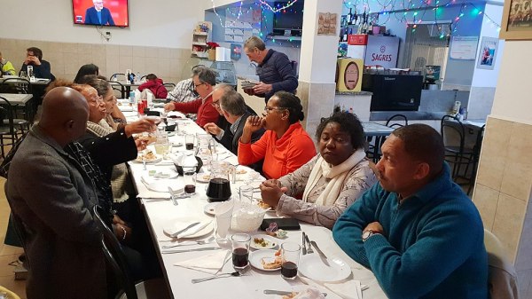 O presidente da APALGAR, Francisco Sales, dirigiu algumas palavras aos presentes, salientado que este convívio surgiu em retribuição ao convite da AANGA para o jantar de Natal em Albufeira. “Fartaram-se de trabalhar lá em Albufeira para esse convívio e aqui temos um jantar em moldes um pouco diferentes. Esta colaboração, esta parceria que estamos a fazer entre as duas associações deve continuar, com o programa que já definimos para o próximo ano, designadamente para a comemoração do Dia de África, os encontros que são de calendário, onde temos que estar presentes como associações mas podemos ir mais longe, como temos falado. As nossas associações têm que ser associações para o desenvolvimento. Temos o Dia de Angola, que para nós é importante e temos condições para isso, ou melhor, vamos ter condições para vos receber”, sustentando que “estes encontros tenham continuidade”, e desejando “que tenham boas festas, um bom ano novo entre nós e que possamos desenvolver cada vez mais este entusiasmo e, acima de tudo, queria pedir-vos que tenham ideias para podermos fazer mais alguma coisa. No âmbito do desenvolvimento, que ideias é que poderemos ter? É isso que vos peço enquanto colaboradores desta causa comum. Tenhamos ideias para as podermos desenvolver nas próximas ações. Seja o que for, qualquer coisa em que possamos solicitar a intervenção das autarquias, ou mesmo programas aos quais possamos candidatar-nos”.