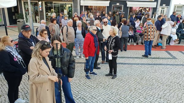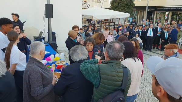 A iniciativa aconteceu na Rua Vasco da Gama perante uma grande moldura humana e com a colaboração de alunos da Escola D. Dinis.