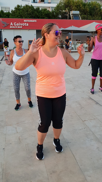 O Largo da Gaivota – Calçadão Nascente, em Quarteira, acolheu ontem, 2 de agosto, ao pôr-do-sol, o 7.º Zumba Sunset’24 com a instrutora Bela Pereira.