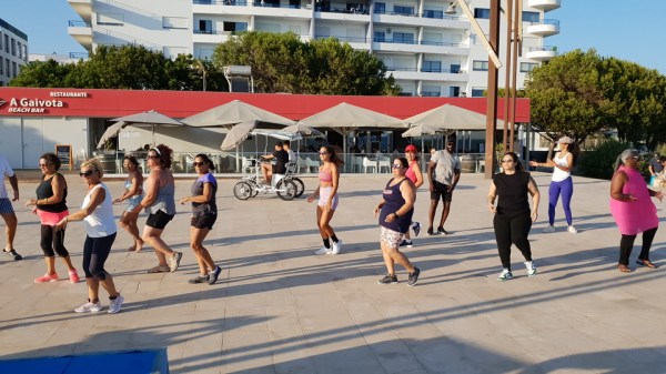 Residentes e veraneantes vão participando cada vez em maior número, incluindo nas varandas, a cada aula que passa no palco da Gaivota para tornar os dias mais ativos.