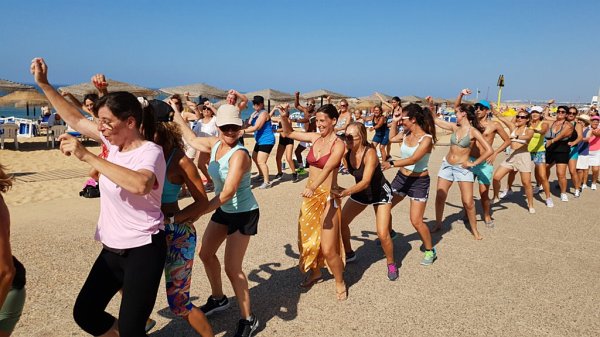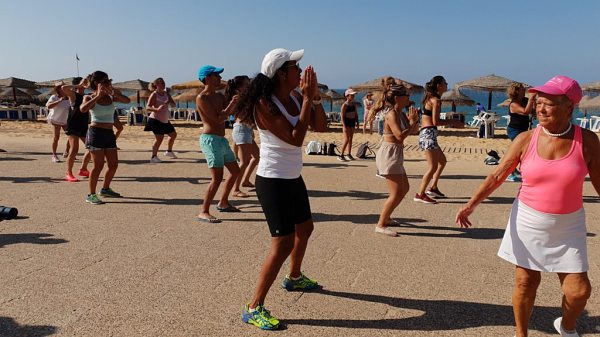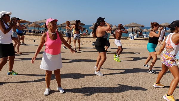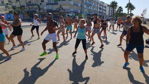 A Praça do Mar, em Quarteira, encheu-se na manhã de sábado, 10 de agosto, de muita energia, ritmo e alegria com mais uma aula aberta de Zumba Sunrise, por Sónia Melo.