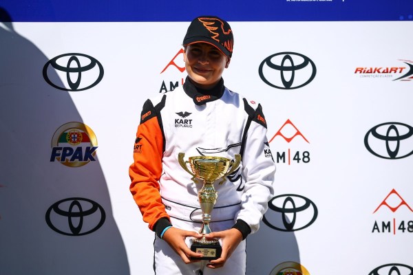 “Foi muito bom subir ao pódio num fim de semana tão difícil, com muito calor e com aquele pequeno azar que nos impediu de disputar a Final de sábado. No domingo senti-me sempre muito bem e consegui chegar ao pódio, só atrás de dois pilotos mais experientes. Tem sido uma época positiva, de muita evolução numa nova categoria, e quero agradecer à minha família e a toda a equipa FCK Motorsport, que tenta sempre melhorar o seu trabalho e que me tem ajudado imenso nesta aprendizagem”, afirmou o promissor piloto de 12 anos.
