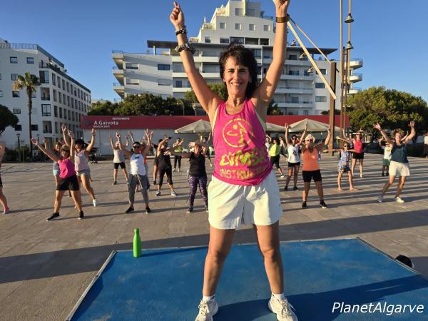 O Largo da Gaivota, no Calçadão Nascente de Quarteira, transformou-se nesta tarde de segunda-feira, 21 de julho, num palco de ritmo e movimento com a aula de Zumba Sunset liderada pela vibrante e carismática instrutora Telma Silva. Com o mar e o pôr do sol como cenário, dezenas de participantes, entre veraneantes e algumas crianças animadas, deixaram-se contagiar pelos passos sensuais e pela energia contagiante da “moura encantada” do fitness algarvio.