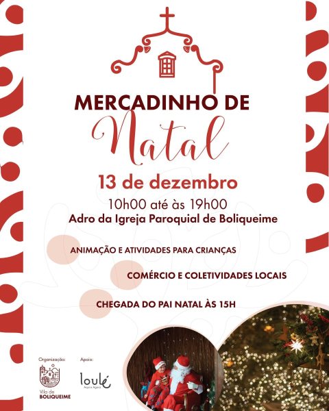 A Junta de Freguesia de Boliqueime organiza, no dia 13 de dezembro, um Mercadinho repleto de atividades, comércio local e muita animação. A entrada é livre.