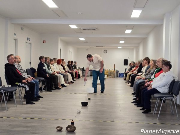 No âmbito do projeto “Quarteira Longevidade com Qualidade”, uma iniciativa da Junta de Freguesia de Quarteira com o apoio da Câmara Municipal de Loulé, realizou-se na tarde de ontem, dia 5 de dezembro, no CALQ III, uma sessão de Meditação com Taças de Cristal, dinamizada pelo monitor Válter Encarnação da Academia do Saber – Quarteira.