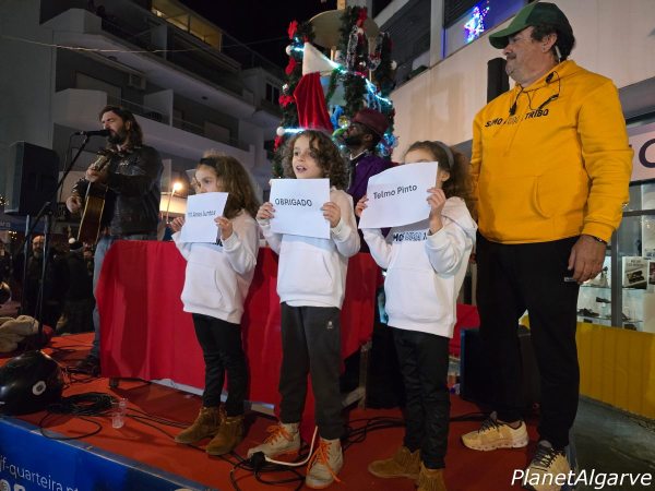 O ponto alto do dia foi um momento de solidariedade em movimento: a receção aos 13 Grupos Motards, no primeiro Encontro Solidário de Motoclubes do Algarve, com a entrega de bens alimentares e brinquedos. A noite continuou com um gesto coletivo de puro agradecimento: enquanto Daniel Kemish interpretava ‘One’, dos U2, uma onda de luzes de telemóvel iluminou o céu numa homenagem emocionante ao apoio incondicional do Presidente da Câmara Municipal de Loulé, Telmo Pinto, desde a 1ª edição do natal das Ruas, enquanto presidente da Junta de Freguesia de Quarteira.