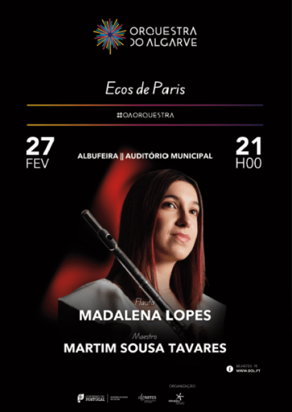 Já a 27 de fevereiro, às 21h00, atua a Orquestra do Algarve. Sob a batuta do maestro Martim Sousa Tavares, “Ecos de Paris” promete marcar pela leveza e contraste, apresentando pela primeira vez no país uma obra de Francis Poulenc, interpretada pela flautista Madalena Lopes, jovem premiada no Concurso Internacional de Música Júlio Cardona. O programa inclui ainda a Sinfonia n.º 31 de Mozart e, termina com uma obra vibrante da compositora norte-americana Ruth Crawford-Seeger, inspirada nas danças tradicionais das regiões fronteiriças dos Estados Unidos da América.