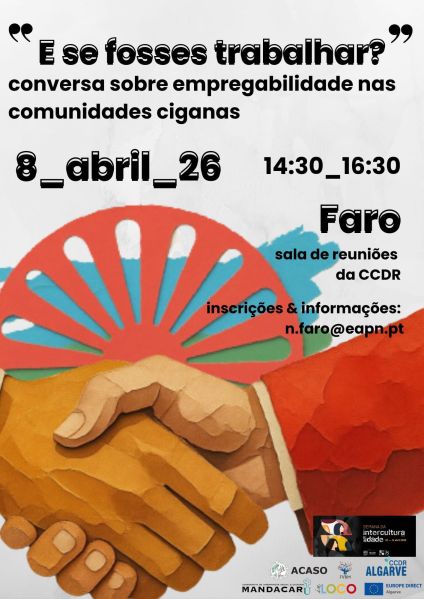 No âmbito da Semana da Interculturalidade, realiza-se no dia 8 de abril, entre as 14h30 e as 16h30, em Faro, o debate “E se fosses trabalhar?”, dedicado à reflexão sobre a empregabilidade nas comunidades ciganas.