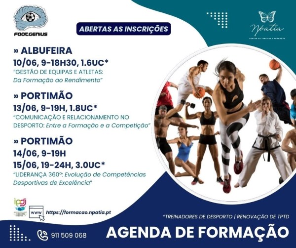 INSCRIÇÕES >> https://formacao.npatia.pt/produto/comunicacao-e-relacionamento-no-desporto-entre-a-formacao-e-a-competicao-portimao26/