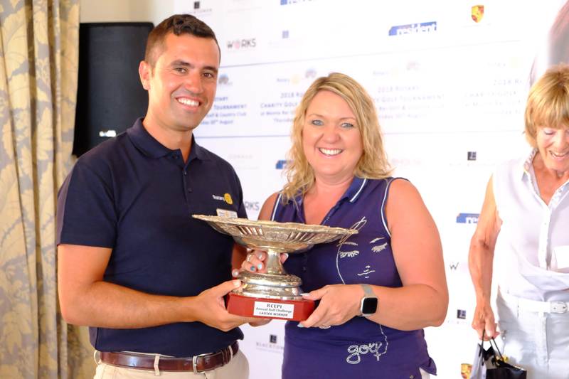 O presidente do RCEPI, Bruno Costa, entrega o prémio à vencedora senhoras, Shirley Ann Steven